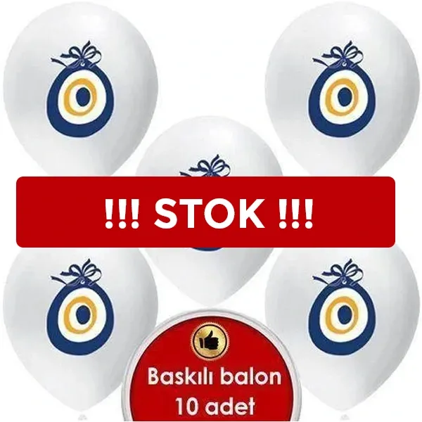 Her türlü organizasyonlarda kullanabileceğiniz karışık renkli nazar boncuk baskılı balon. Dilerseniz mağazamıza gelip balonları uçan balon şeklinde şişirebiliriz. Sünnet düğünü süslemelerinde sandalye arkasına uçan balon olarak yapılıp dekorasyon da kullanılmaktadır.