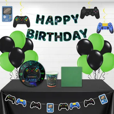 • Oyun konsolu ve gamer temalı doğum günü süsleri ile tam uyumlu set