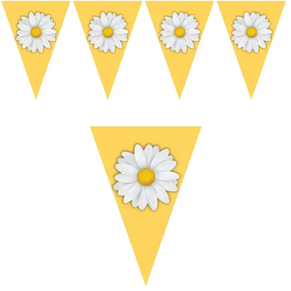 Papatya Temalı Flama Bayrak Set 170 cm uzunluğunda sıralı bir şekilde dizili toplam 10 adet bayraktan oluşmaktadır.Papatya temalı flama bayrağın ebatları 15*22 cm'dir.Ürün demonte olarak gelmektedir.Paket içerisinde bulunan ip ile ürünü dilediğiniz şekilde asabilirsiniz.Etkinliklerinizi renklendirecek süsleme çeşitlerinden biridir.