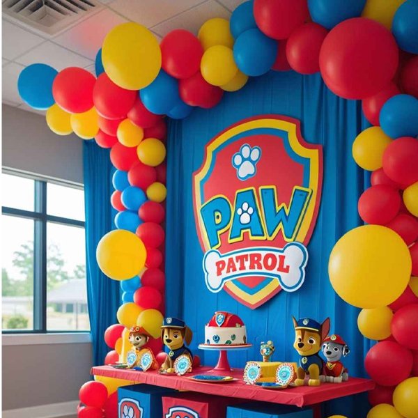 Balonlar ve Konfeti: Paw Patrol temalı balonlar ve masa konfetisi masayı daha da şık hale getirecektir.