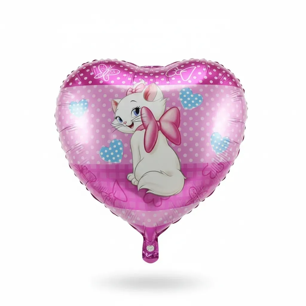 Sevimli kedi figürlü pembe kalp folyo balon, özellikle kız çocuk doğum günü konseptlerinde öne çıkan tatlı ve dikkat çekici bir detaydır. Kalp formu ve kedi tasarımı sayesinde parti alanına hem sıcak hem eğlenceli bir hava katar.
