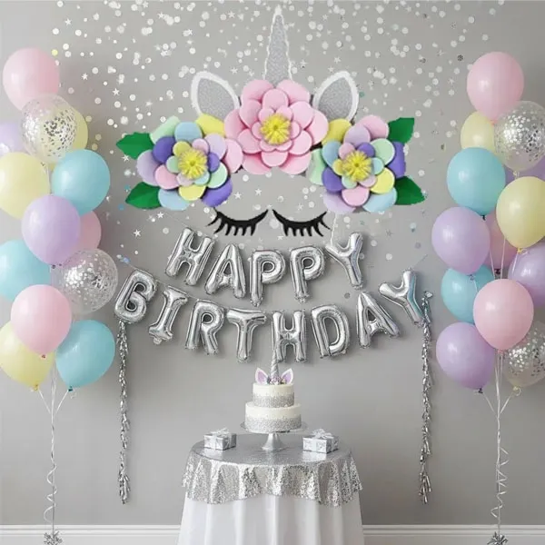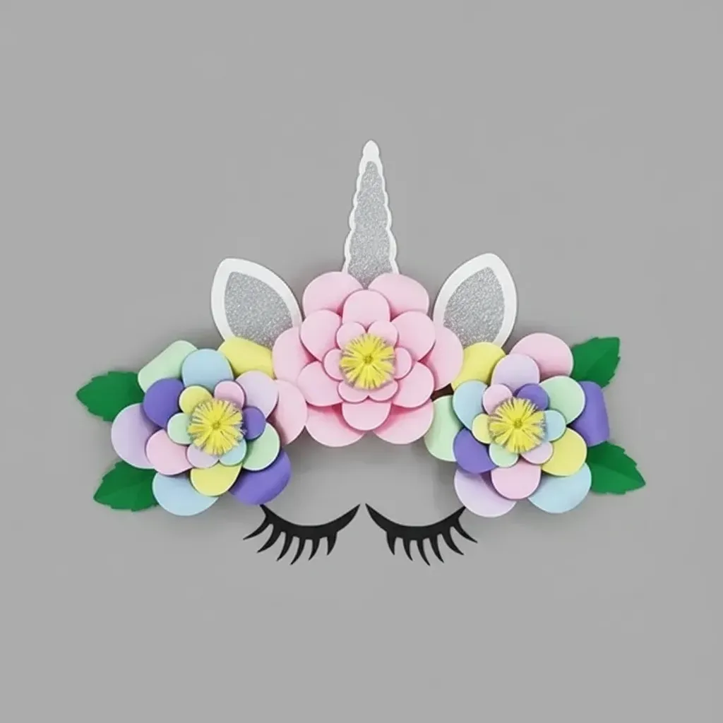 Unicorn Renkli Kağıt Çiçek Seti Gümüş