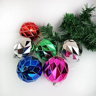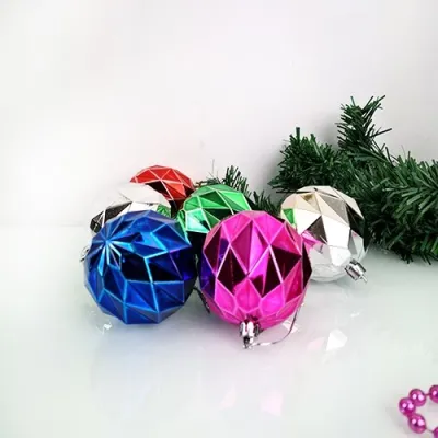 Karışık Renkli Yılbaşı Prizma Top Süs 6 Adet 6 cm