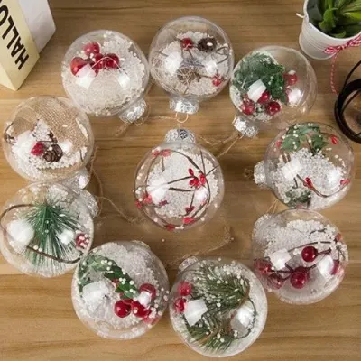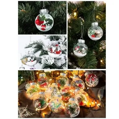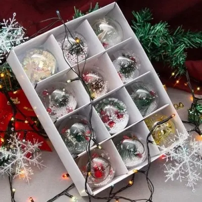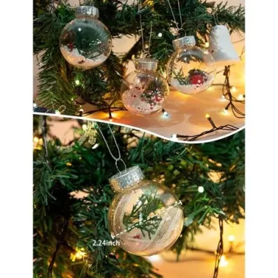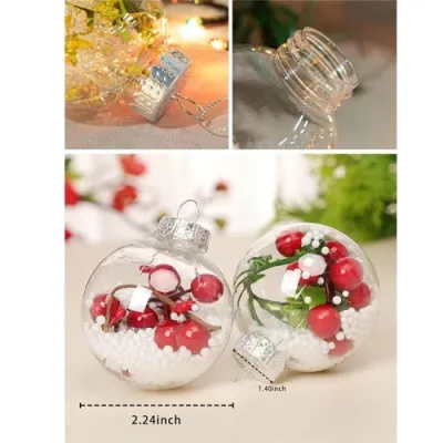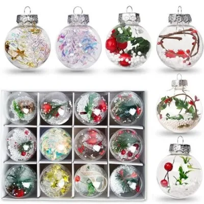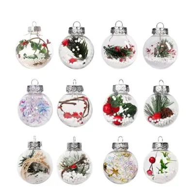 Şeffaf İçi Süslü Kokinalı Yılbaşı Çam Ağacı Topu 12 adet 6 cm