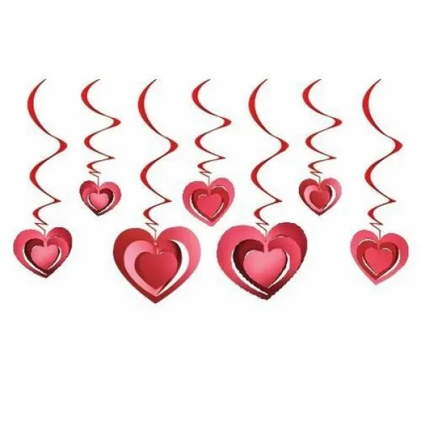 4. 3D Kalp Asmalı Tavan Süsü Kırmızı 12 Adet