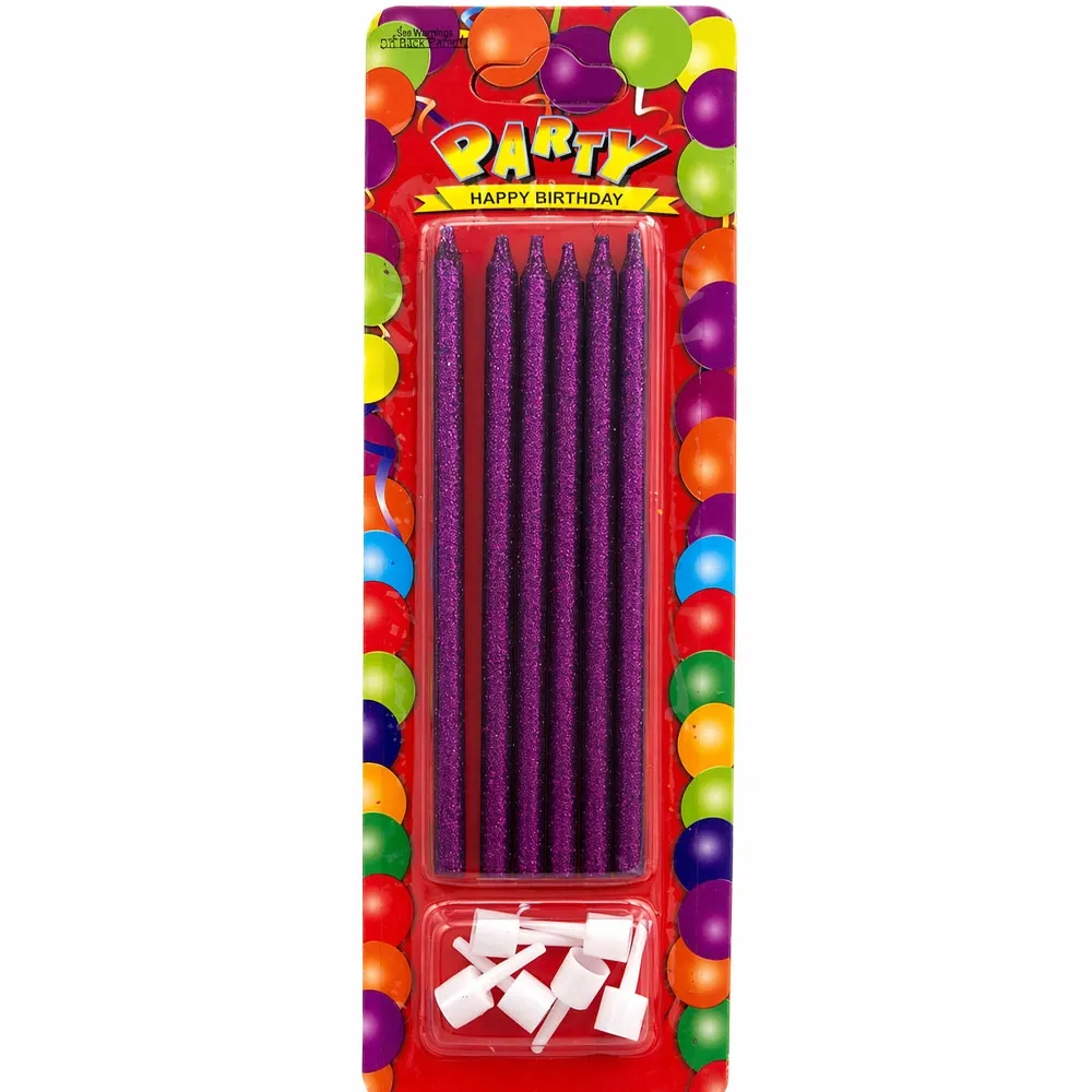 Simli Mor Pasta Mumu (6 Adet -14 cm)