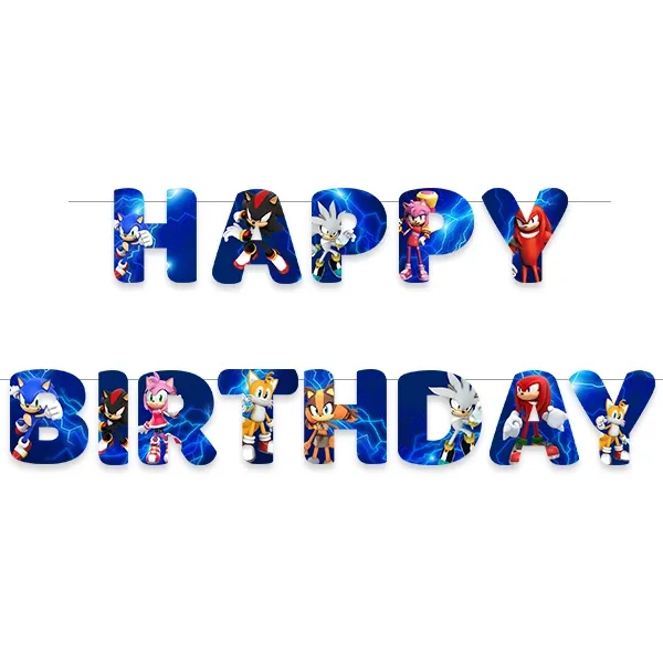 Sonic konseptli doğum günü süslemeleri planlayanlar için vazgeçilmez bir dekor ürünü olan bu yazı; balonlar, masa süsleri ve temalı aksesuarlarla birlikte kullanıldığında parti bütünlüğünü tamamlar.
