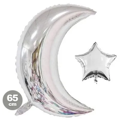!TOPTAN! Ay Yıldızlı Folyo Balon Gümüş 65 cm