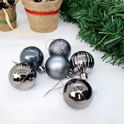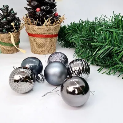 Uzay Gri Yılbaşı Top Süs Mat-Parlak-Simli-Aynalı 6 Adet 4 cm