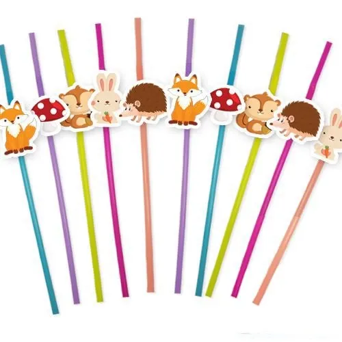 Doğum günü partinizde soğuk meşrubat içeceklerinizi daha keyifli hale getirebileceğiniz Woodland Temalı Artistik Pipet.