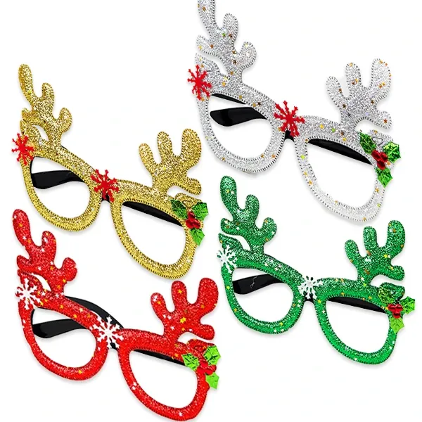 Yılbaşı Simli Geyik Figürlü Gözlük (1 Adet)